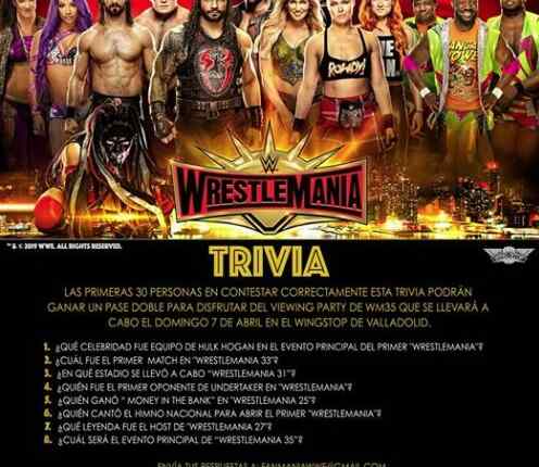 Envía tus respuestas vía correo electrónico a fanmaniawwe@gmail.com, si eres uno de los primeros 30 participantes en responder correctamente a la trivia, serás afortunado ganador del premio antes mencionado