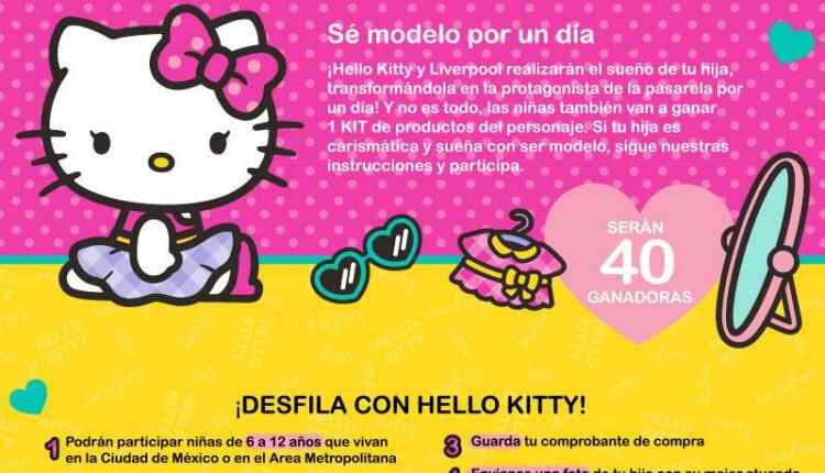 Liverpool invita a las pequeñas a participar en el concurso “Fashion Show Hello Kitty”, en el que habrá 40 ganadoras que se convertirán en modelos de pasarela por un día, en el que las niñas desfilarán con productos de Hello Kitty y además recibirán un kit de regalo.