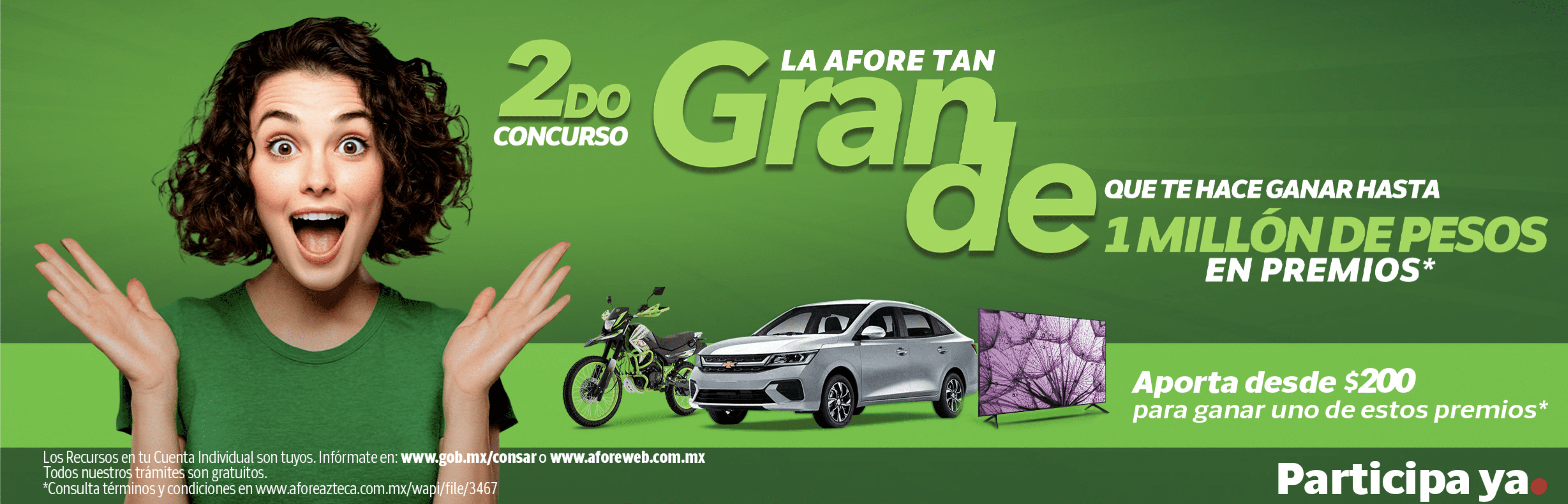 Banco Azteca te invita a participar a su 2do Concurso Afore Azteca 2025 en el que podrás ganar hasta 1 millón de pesos en premios, si quieres ser ganador realiza la mecánica siguiente: