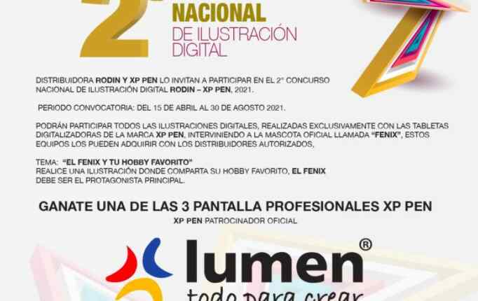 Rodín y XP Pen te invita a participar a su Segundo Concurso Nacional de Ilustración Digital XP PEN 2021 en el que podrás ganar 1 de 3 pantallas profesionales XP PEN, si quieres ser ganador realiza la mecánica siguiente: