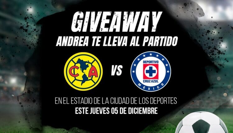 Andrea regalará al participante ganador: Boletos al partido de semifinales América vs Cruz Azul en el Estadio Ciudad de los Deportes en CDMX, este jueves 5 de diciembre de 2024.