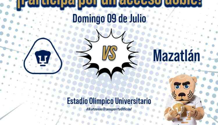 Autovías regalará a los participantes ganadores: Boletos al partido de los Pumas vs Mazatlán. No incluye transporte, alimentos ni bebidas.