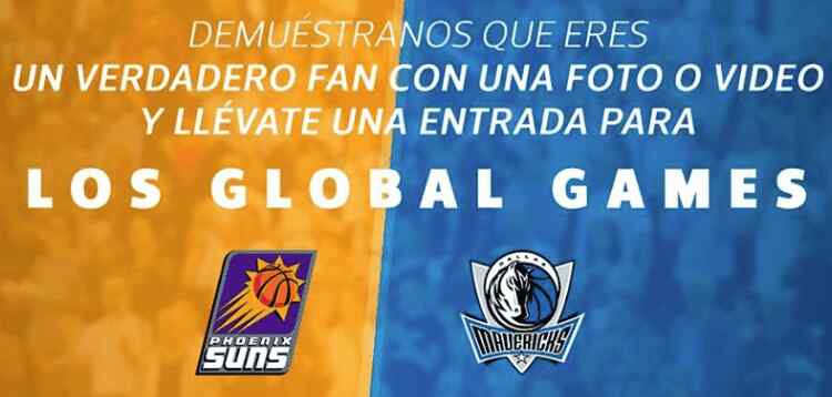 Sube una foto o video de máximo 15 segundos donde demuestres tu pasión por el basquetbol, la NBA y los Global Games y gana boletos gratis para el partido NBA Suns vs. Mavericks