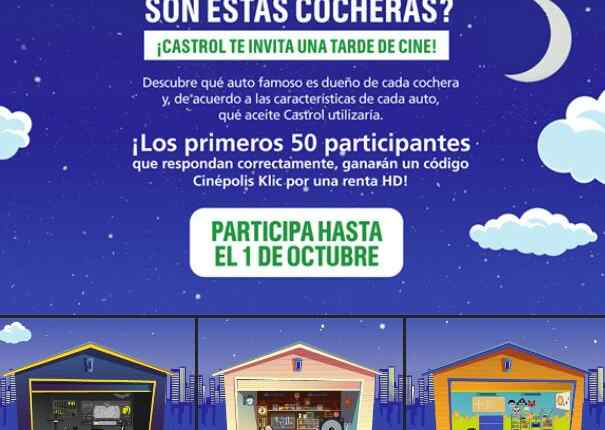 Castrol te invita a participar a su concurso en el que podrás ganar una de 50 rentas en Cinépolis Klic, si quieres ser ganador realiza la mecánica siguiente: