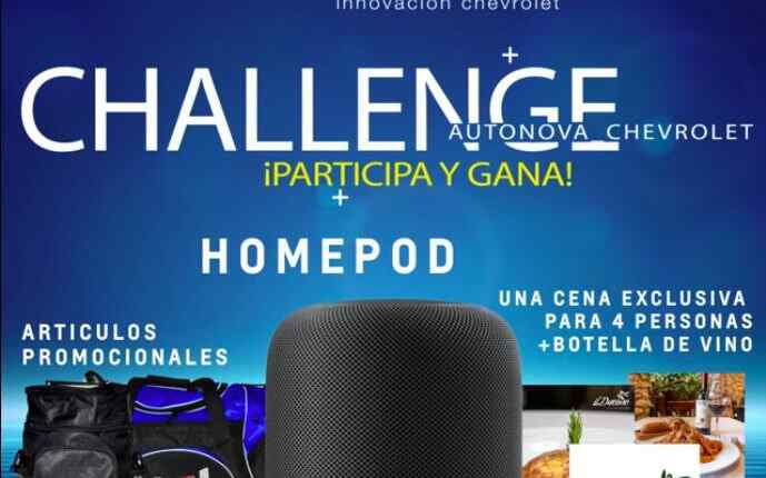 Autonova Chevrolet te invita a participar a su Challenge Chevrolet 2021 en el que podrás ganar Homepod, cena para 2 y más, si quieres ser ganador realiza la mecánica siguiente: