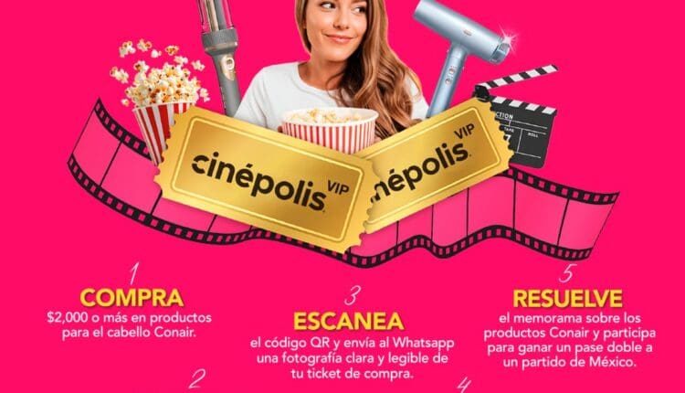 Conair México te invita a participar a su concurso en el que podrás ganar boletos VIP al cine y hasta un pase doble para apoyar a México en el Mundial 2026, si quieres ser ganador realiza la mecánica siguiente: