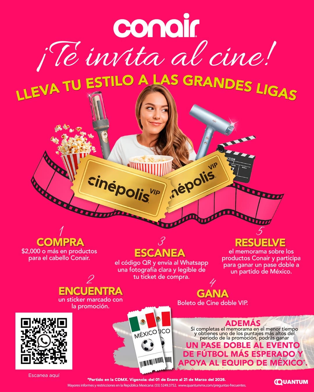 Compra $2,000 en productos Conair, registra tu ticket y gana boletos VIP al cine y hasta un pase doble para apoyar a México en el Mundial 2026