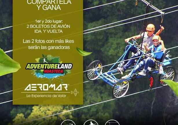Aeromar y Adventureland regalarán a los participantes ganadores: Dos boletos de avión ida y vuelta por la Aerolinea Aeromar con destino a Tamuín