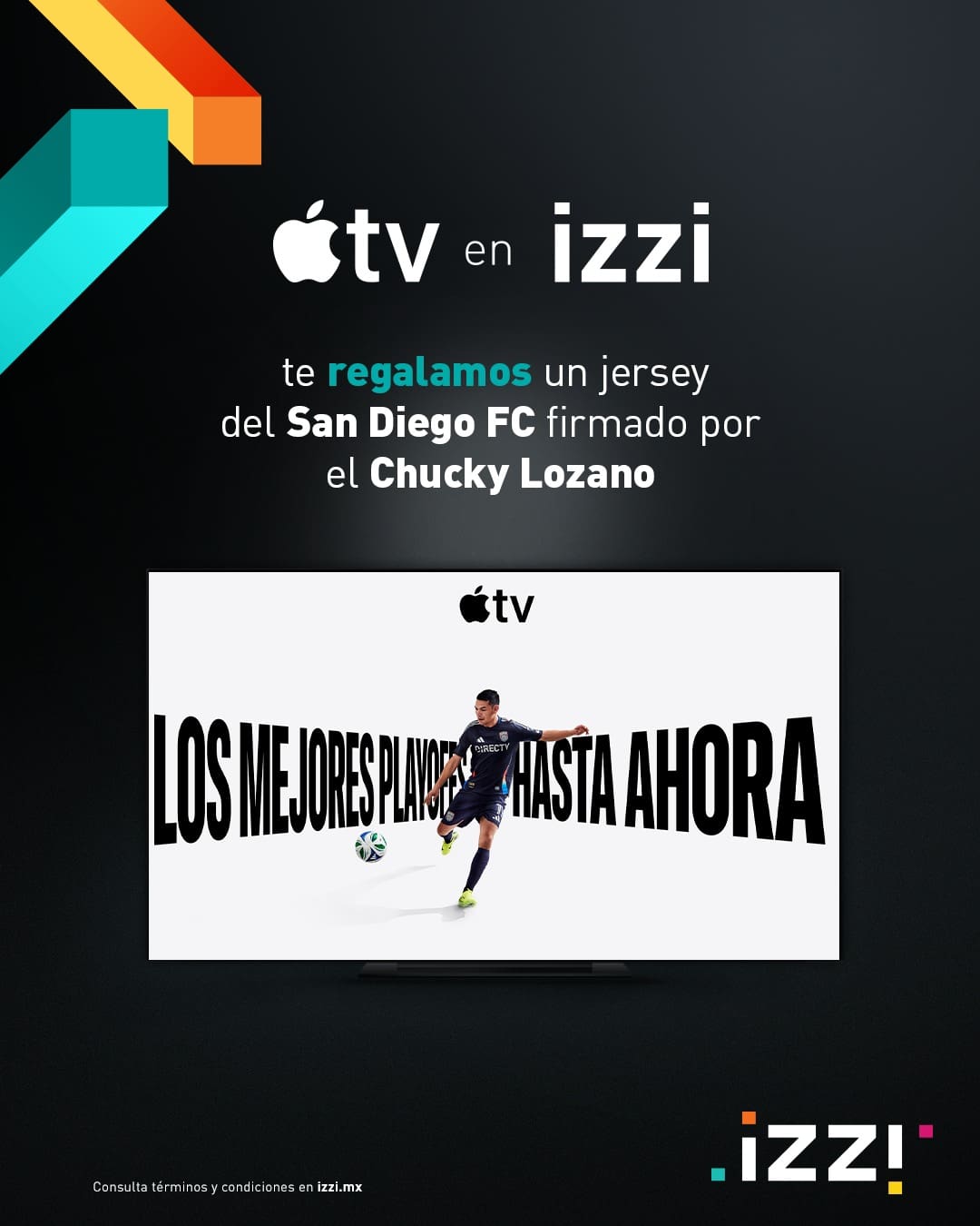 Izzi Telecom te invita a participar a su concurso Apple TV en izzi en el que podrás ganar un jersey de San Diego FC firmado por el Chucky Lozano, si quieres ser ganador realiza la mecánica siguiente: