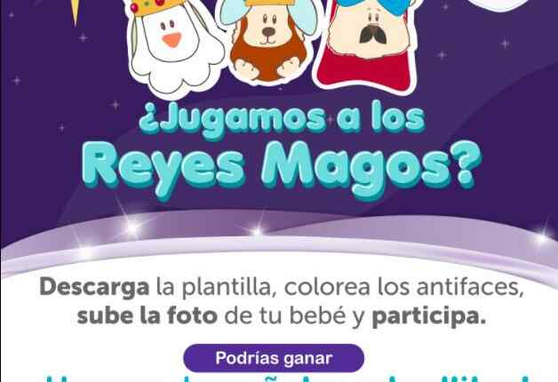 Ingresa a la página de Facebook de bbtips y dale like, descarga la plantilla para colorear los antifaces de los Reyes Magos, tómale una foto a tu bebé con alguno de los antifaces que hayas coloreado.