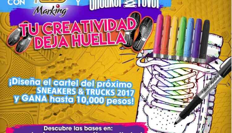 Ilustra un cartel tomando com tema Sneakers, food trucks y música, en tamaño doble carta, con técnica libre, deberás utilizar Bic Marking durante el proceso (si resultas ganador deberás comprobar el uso de Bic Marking), tómale una foto a tu cartel y envíalo al correo que te enviaron para confirmar tu asistencia, un jurado elegirá a los participantes ganadores