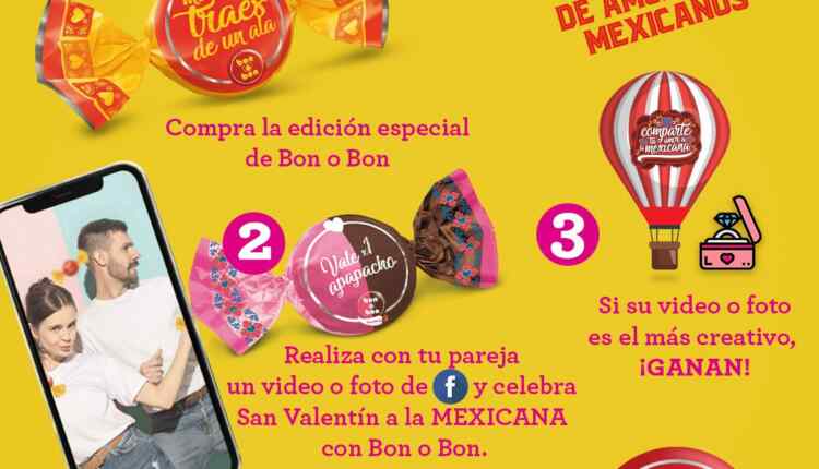 Compra un producto de edición especial con frases de amor de la marca Bon o Bon, realiza con tu pareja una foto o video divertido y creativo donde demuestren como celebran el día del amor y la amistad a la mexicana con Bon o Bon.