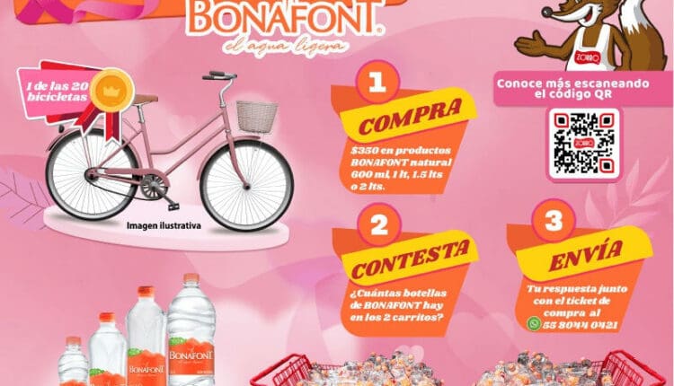 Bonafont y Zorro Abarrotero regalarán a los participantes ganadores: Una bicicleta.