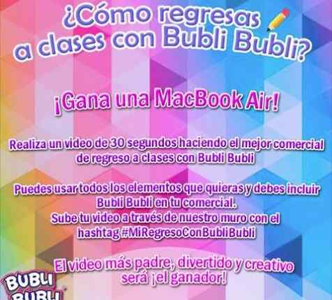 Bubli Bubli te invita a participar a su concurso en el que podrás ganar una computadora Macbook Air, si quieres ser ganador realiza la mecánica siguiente: