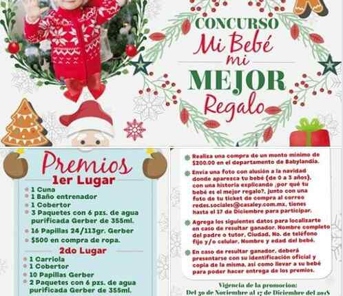 Ingresa a la página de Facebook de Casa Ley y dale like, tómale a tu bebé (de 0 a 3 años) una foto navideña original y creativa y envíala junto con una historia de por que tu bebé es tu mejor regalo vía correo electrónico a redes.sociales@casaley.com.mx