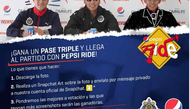 Chivas y Pepsi Ride te invitan a participar en su concurso en el que podrás ganar un pase triple para el partido Chivas vs Xolos y llegar en la Pepsi Ride, si quieres ser ganador realiza la mecánica siguiente: