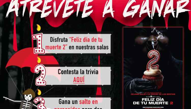Cinemex te invita a participar a su concurso Feiiz Día de tu Muerte 2 en el que podrás ganar un salto en paracaídas, si quieres ser ganador realiza la mecánica siguiente: