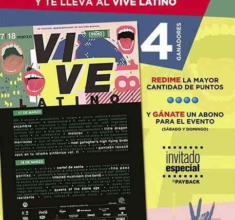 Paga con puntos de tu tarjeta invitado especial Cinemex y gana boletos para el Vive Latino 2018