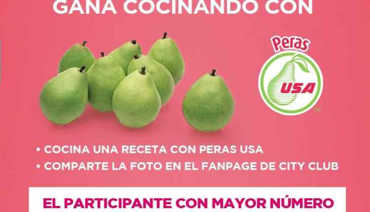 Compra Peras USA en cualquier City Club y conserva tu ticket de compra, prepara una receta para mamá en la que el ingrediente principal sean las Peras USA, tómale una foto a tu receta preparada y envíala vía inbox a la página de Facebook de City Club junto a tu ticket de compra, membresía, nombre completo y club