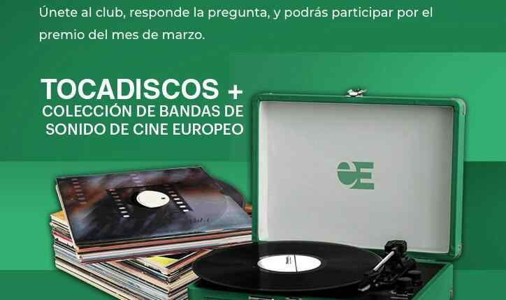 Club Europa Europa regalará al participante ganador: Un tocadiscos + viniles de bandas de sonido de cine europeo