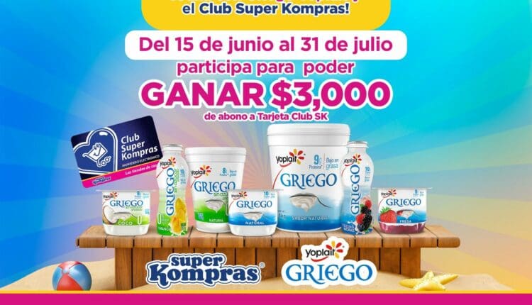 Realiza compras de productos Griego Yoplait, presenta tu tarjeta Club Super Kompras y gana un abono de $3,000 en tu tarjeta Club Super Kompras