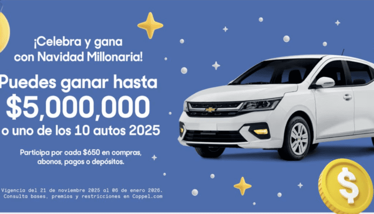 Coppel te invita a participar a su concurso Navidad Millonaria 2025 en el que podrás ganar premio de $5 millones o uno de los 10 autos Chevrolet Aveo, si quieres ser ganador realiza la mecánica siguiente:
