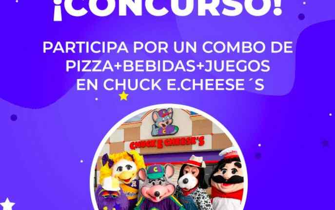 Cuponatic te invita a participar a su concurso en el que podrás ganar 2 pizzas grandes + 4 bebidas + 90 minutos de juego ilimitado en Chuck E. Cheese’s, si quieres ser ganador realiza la mecánica siguiente:
