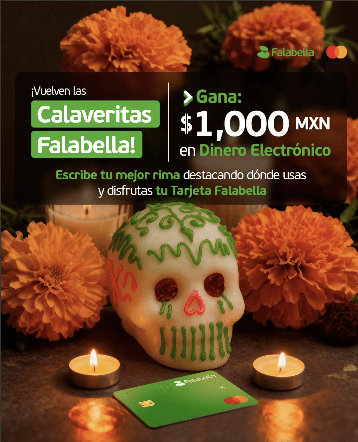 Escribe una calaverita contando cómo disfrutas tu Tarjeta Falabella y gana $1,000 en monedero electrónico