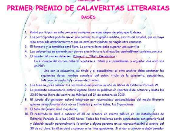 -El otro deber incluir tu nombre completo, título de la calaverita, pseudónimo, teléfono de contacto y correo electrónico