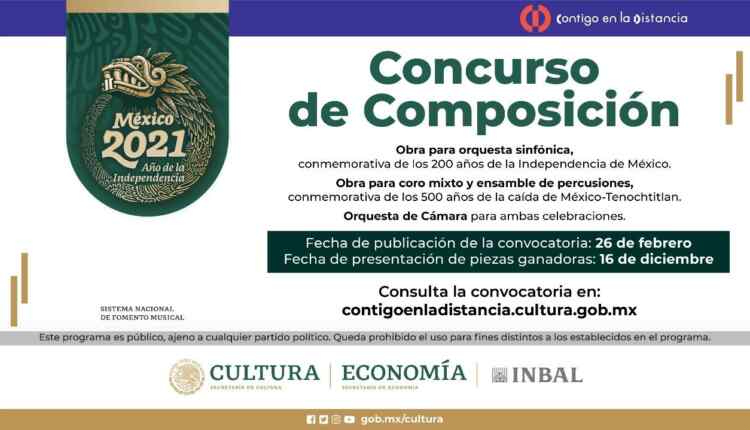 La Secretaría de Cultura y el INBAL te invitan a participar a su concurso de composición para conmemorar nuestra memoria histórica en el que podrás ganar hasta $100,000.00, si quieres ser ganador realiza la mecánica sigiente: