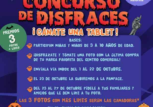 Pabellón Reforma te invita a participar a su concurso de Disfraces de Halloween en el que podrás ganar una tablet, si quieres ser ganador realiza la mecánica siguiente: