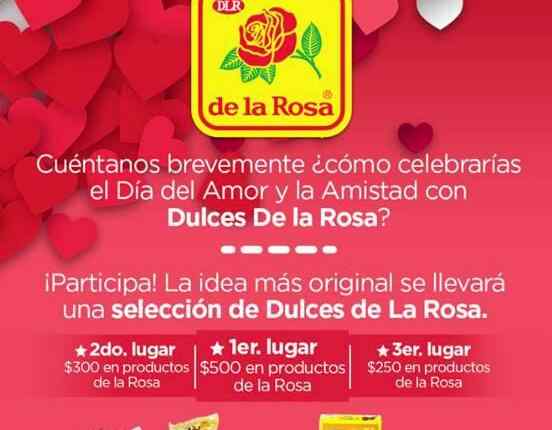 Ingresa a la página de Facebook de De La Rosa y dale like, escribe en una breve idea, original y creativa como es que celebrarías este 14 de Febrero en compañía de Dulces De La Rosa.