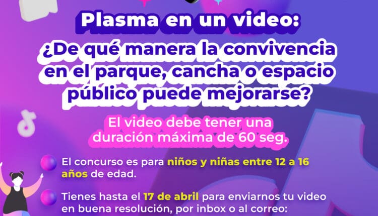 Podrán participar niñas y niños de entre 12 y 16 años de edad. Crea un video para Tik Tok en donde expongas de que manera la convivencia en un parque, cancha o espacio público puede mejorarse, la duración máxima de video de ¡b ser de 50 segundos.