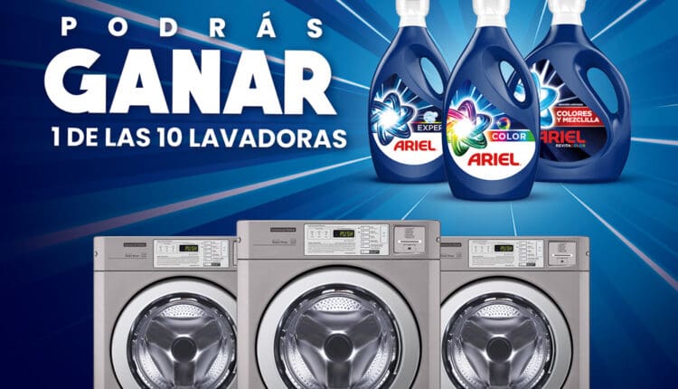 Compra $150 de Ariel liquido, calcula cuántas playeras caben en la lavadora y gana 1 de 10 lavadoras