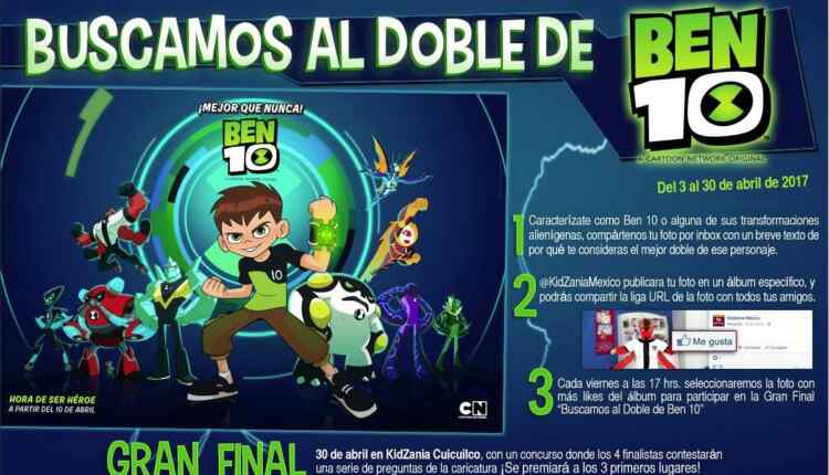 Ingresa a la página de Facebook de Kidzania México y dale like, caracterízate como Ben 10 o alguna de sus transformaciones alienígenas, tomate una foto y envíala vía inbox al Facebook de Kidzania México explicando por qué te consideras el mejor doble de Ben 10.