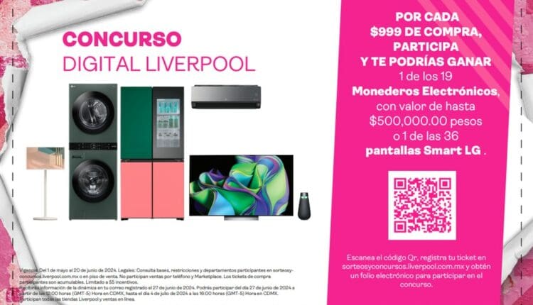 Liverpool te invita a participar a su concurso Digital 2024 en el que podras ganar hasta $500,000.00 y muchos premios más, si quieres ser ganador realiza la mecánica siguiente: