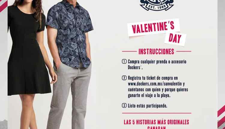 Dockers te invita a participar a su concurso de San Valentín en el que podrás ganar 1 de 5 viajes dobles a la playa, si quieres ser ganador realiza la mecánica siguiente: