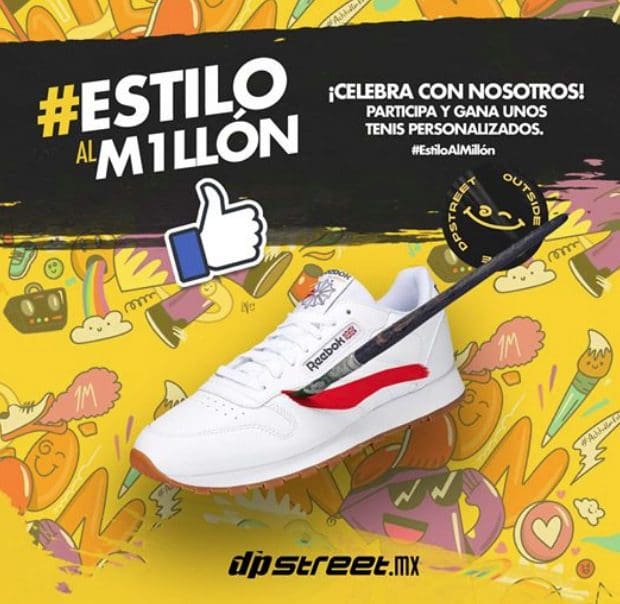 Ingresa a la página de Facebook de Dpstreet y dale like, toma una foto de tus tenis favoritos y compártela en tu cuenta de Facebook en modo público e incluye el hashtag #EstiloAlMillonCondpstreet