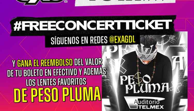 EXA Guadalajara 101.1 FM regalará a los participantes ganadores: El reembolso del valor de su boleto y si no tienen boleto ganarán los lentes favoritos de Peso Pluma.