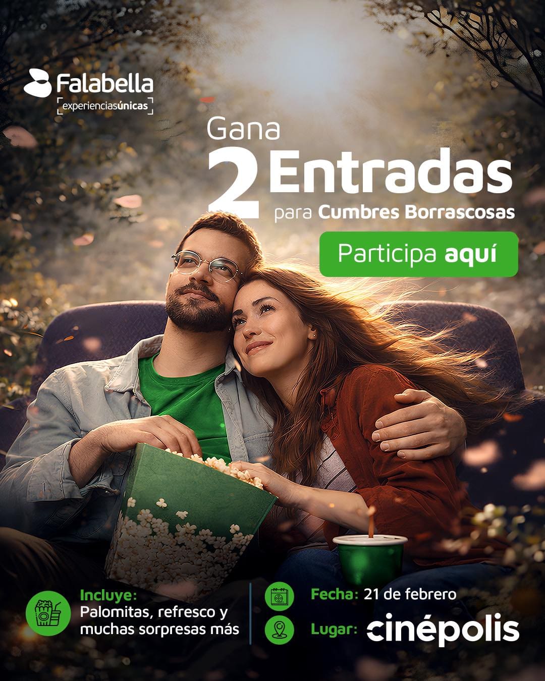 Falabella Mx regalará a los participantes ganadores: Un pase doble para la función de Cumbres Borrascosas en Cinépolis CDMX, el 21 de febrero de 2026.
