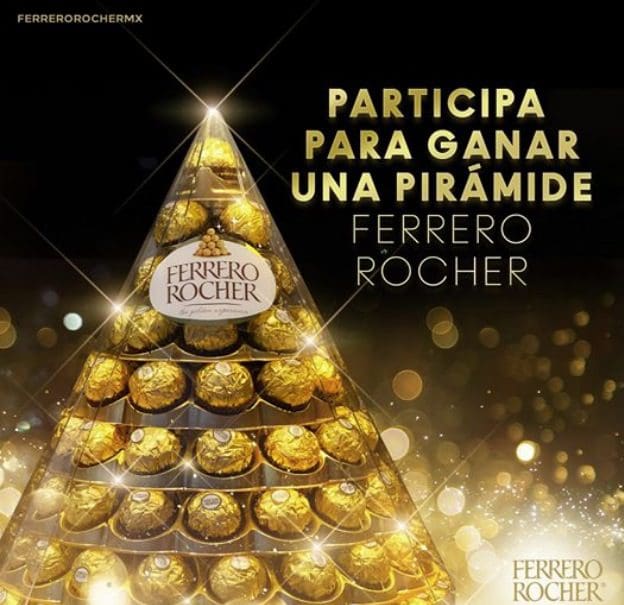 Ferrero Rocher te invita a participar a su concurso en el que podrás ganar una pirámide con 96 Ferrero Rocher, si quieres ser ganador realiza la mecánica siguiente: