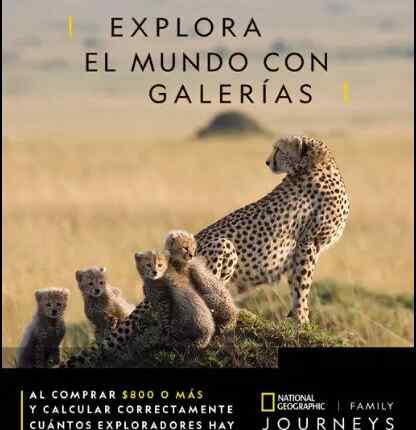 Galerías y National Geographic Journeys te invita a participar a su concurso en el que podrás ganar un viaje a Tanzania, Sudáfrica o Islandia, si quieres ser ganador realiza la mecánica siguiente: