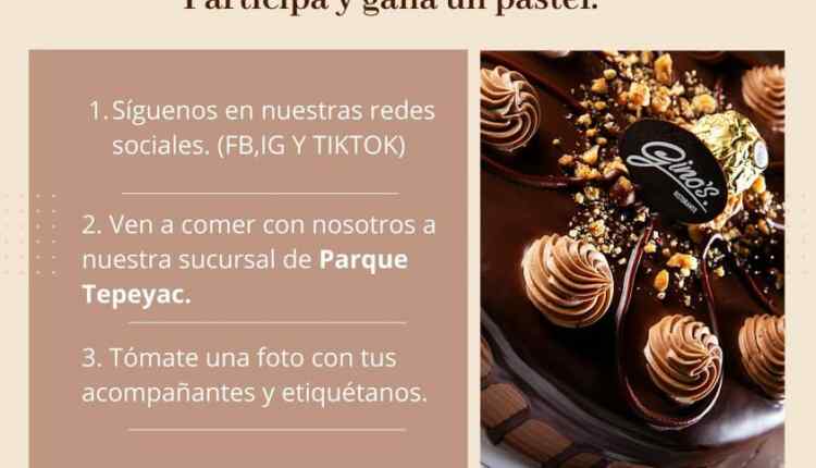 Gino’s Ristorante te invita a participar a su concurso en el que podrás ganar un pastel, si quieres ser ganador realiza la mecánica siguiente:
