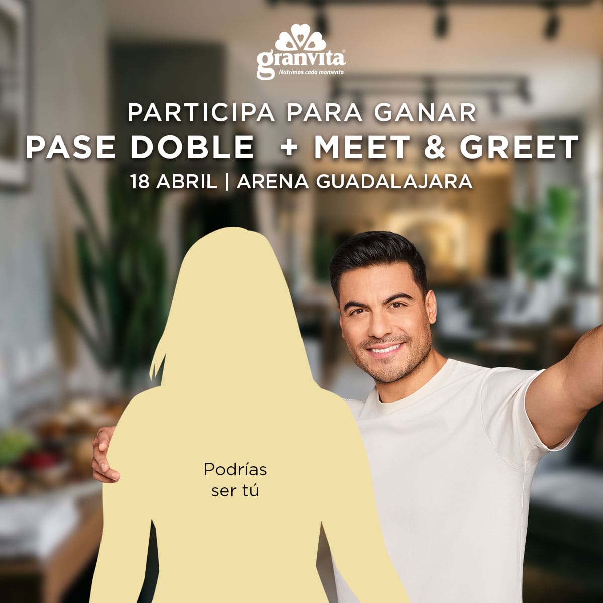 Granvita regalará al participante ganador: Un pase doble al concierto de Carlos Rivera + acceso al meet & greet, este 18 de abril de 2026 en la Arena Guadalajara.