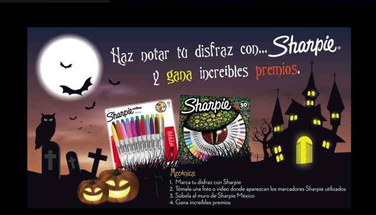 Ingresa a la página de Facebook de Sharpie México y dale like, marca tu disfraz con Sharpie, tómale una foto o video en donde aparezcan los marcadores Sharpie utilizados