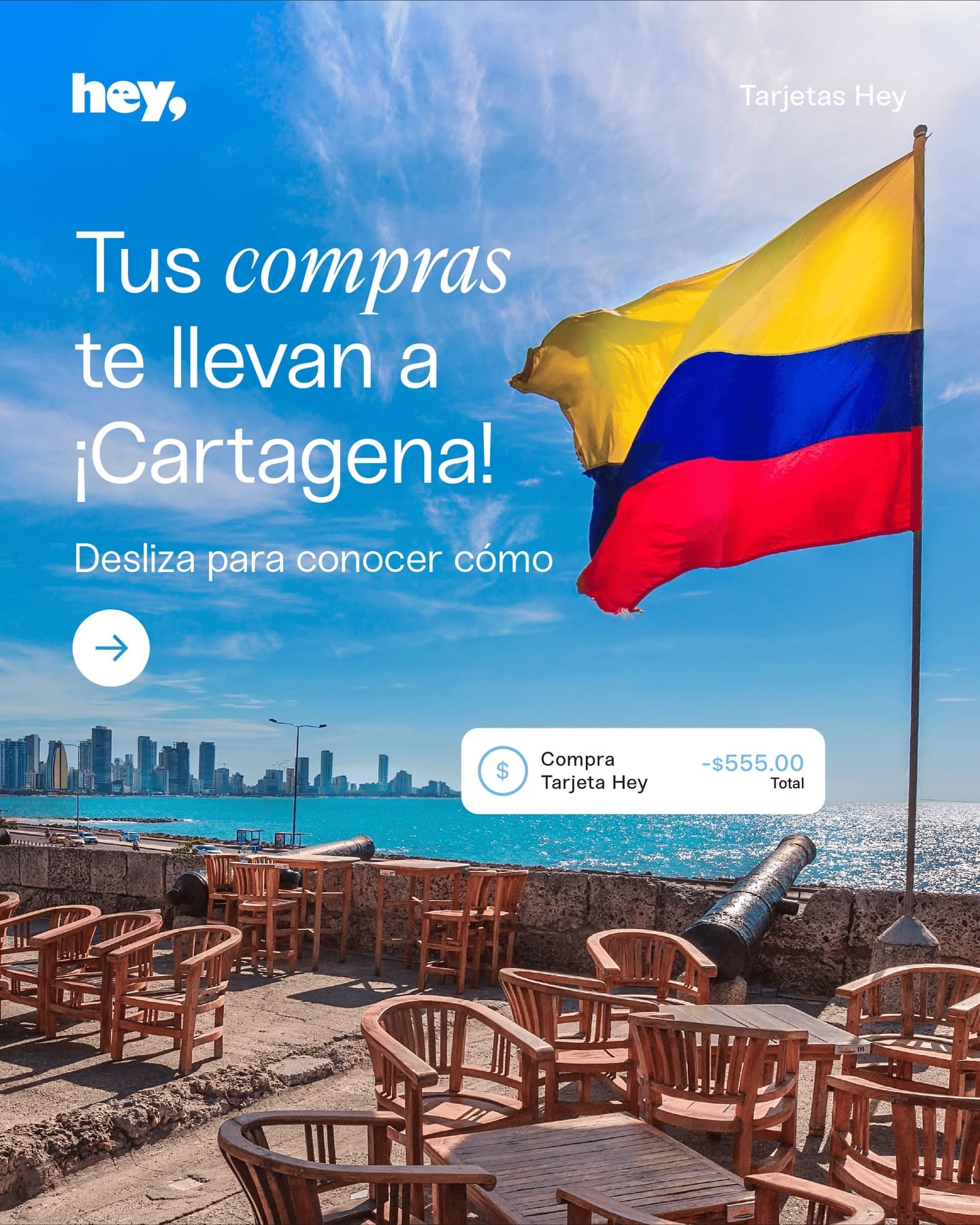 Compra con tus Tarjetas Hey $500 o más y gana un viaje doble a Cartagena
