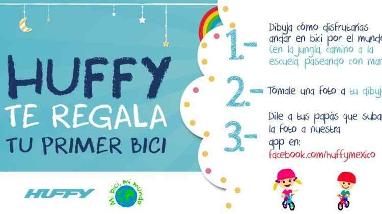 Ingresa a la página de Facebook de Huffy México y dale like, podrán participar niños de 6 a 12 años de edad, dibuja como disfrutarías andar en bici en una jungla, camino a la escuela, paseando con tu mamá, etc, tómale una foto a tu dibujo y dile a tus papás que suban la foto al portal del concurso