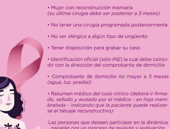 Instituto de la Juventud te invita a participar a su concurso Mes Rosa en el que podrás ganar un tatuaje reconstructivo para sobrevivientes de cáncer de mama, si quieres ser ganador deberás cumplir con los siguientes requisitos: