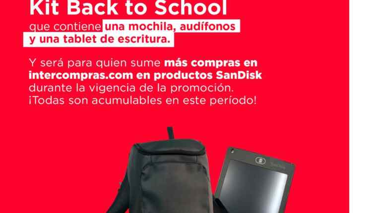 Intercompras y SanDisk regalarán al participante ganador: Un kit de regreso a clases con audífonos, mochila y tablet de escritura.