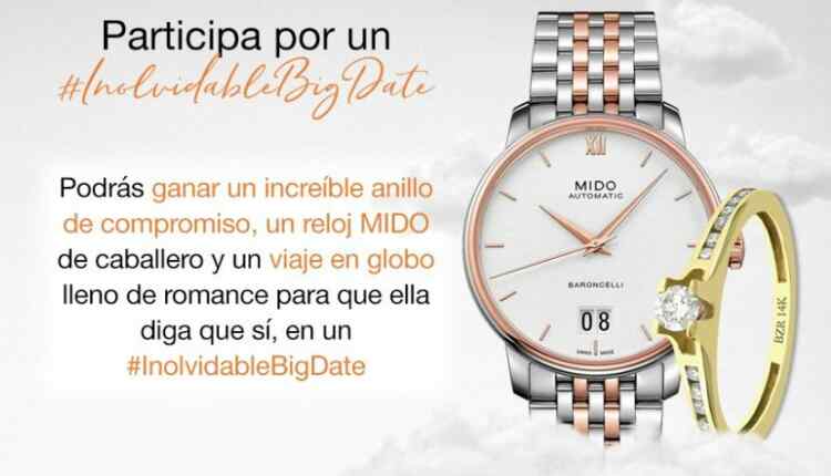 Concurso Joyerías Bizzarro y relojes Mido #InolvidableBigDate: Gana anillo de compromiso, reloj y viaje en globo